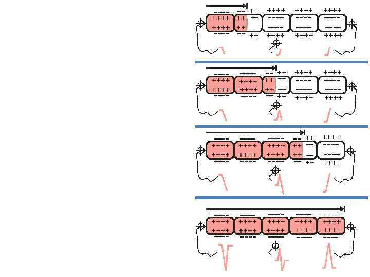 Формирование электрограммы одиночного мышечного волокна Перемещение двойного слоя зарядов, расположенных на границе возбужденного (-) и невозбужденного (+) участков кардиомиоцита. Диполь создает элементарную ЭДС – разность потенциалов.