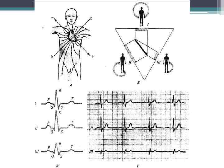 I: Разность потенциал ов = + 0, 5 + - - +0, 3 -0, 2 - Сумма потенциалов отведений I и III равна величине потенциала в отведении II II: Разность потенциалов = + 1, 2 I + III = II III: Разность потенциалов = + 0, 7 +1, 0 + +