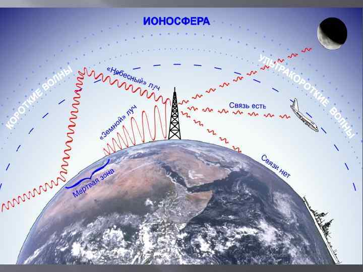 Короткие волны К коротким волнам относятся радиоволны длиной от 100 до 10 м (частоты 3— 30 МГц). Преимуществом работы на коротких волнах по сравнению с работой на более длинных волнах является то, что в этом диапазоне можно создать направленные антенны. Короткие волны могут распространяться как земные и как ионосферные. С повышением частоты сильно возрастает поглощение волн в полупроводящей поверхности Земли. Поэтому при обычных мощностях передатчика земные волны коротковолнового диапазона распространяются на расстояния, не превышающие нескольких десятков километров Ионосферной волной короткие волны могут распространяться на многие тысячи километров, причем для этого не требуется передатчиков большой мощности. Поэтому в настоящее время короткие волны используются главным образом для связи и вещания на большие расстояния.