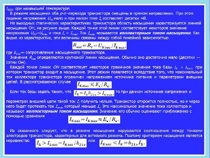 Выходные и входные характеристики транзисторного ключа 1. 3. Режимы отсечки и насыщения транзисторного ключа.
