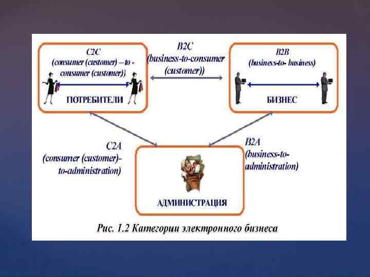 Виды электронной коммерции: В 2 В ( бизнес- бизнес)- торговля предприятий между собой В 2 С ( бизнес – потребитель) С 2 С ( потребитель – потребитель)