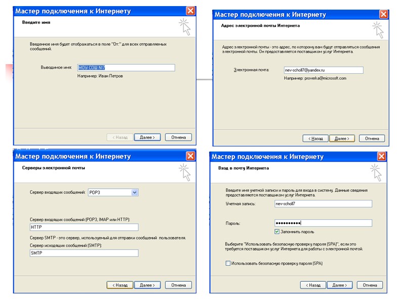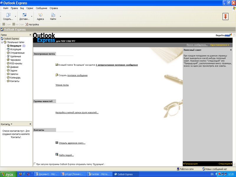 После создания почтового ящика им можно пользоваться (получать и отправлять почту) непосредственно с сервера. Но можно зарегистрировать свой электронный адрес в программе Outlook Express и пользоваться этой программой для работы с почтой.