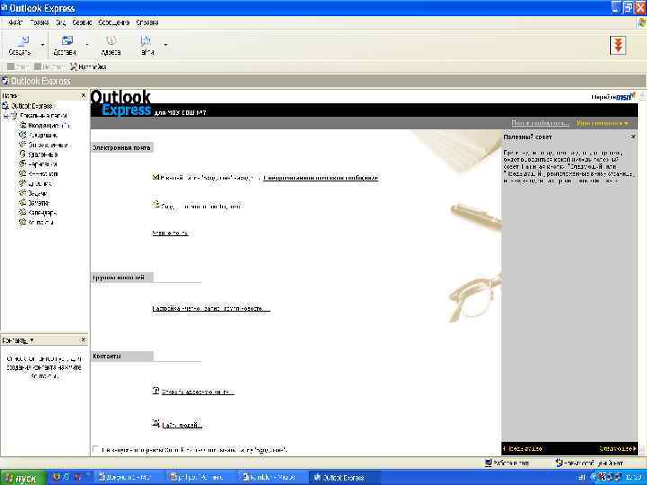 После создания почтового ящика им можно пользоваться (получать и отправлять почту) непосредственно с сервера. Но можно зарегистрировать свой электронный адрес в программе Outlook Express и пользоваться этой программой для работы с почтой.