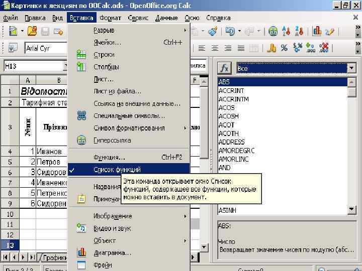 Вмонтовані функції СУММ (SUM), СРЗНАЧ (AVERAGE) КОРЕНЬ (SQRT