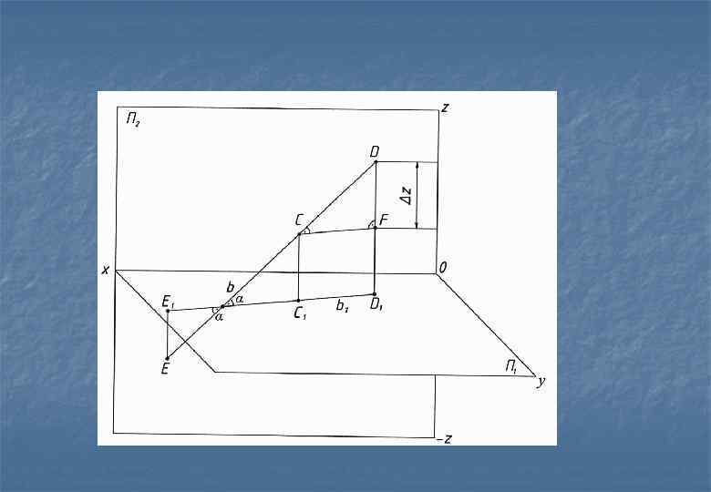 Определение отрезка прямой и угла наклона к плоскости проекций