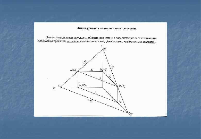 h-горизонталь плоскости «а» , v-фронталь плоскости «а» , w- профильная прямая плоскости «а»