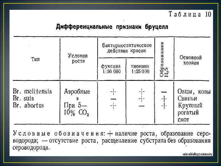 ФЕРМЕНТАТИВНЫЕ СВОЙСТВА: • В ОТНОШЕНИИ УГЛЕВОДОВ • МАЛОАКТИВНЫ, • БЕЛКИ НЕ РАСЩЕПЛЯЮТ • • ДЛЯ ДИФФЕРЕНЦИАЦИИ БРУЦЕЛЛ ПРИМЕНЯЮТ: • • 1. бактериостатическое • действие красок • • 2. потребность в СО 2 • • 3. образование сероводорода • • 4. РА с монорецепторными • сыворотками. РЕЗИСТЕНТНОСТЬ: ЗНАЧИТЕЛЬНО УСТОЙЧИВЫ В ПИЩЕВЫХ ПРОДУКТАХ: МОЛОКО несколько недель МЯСО 20 сут МАСЛО до 60 дней СЫР до 4 недель НА БЕЛЬЕ в выделениях до 1 мес В ПЫЛИ, ВОДЕ до 2 мес КИПЯЧЕНИЕ – мгновенно, 60 о. С 30 мин • к ДЕЗИНФЕКТАНТАМ – УСТОЙЧИВ.