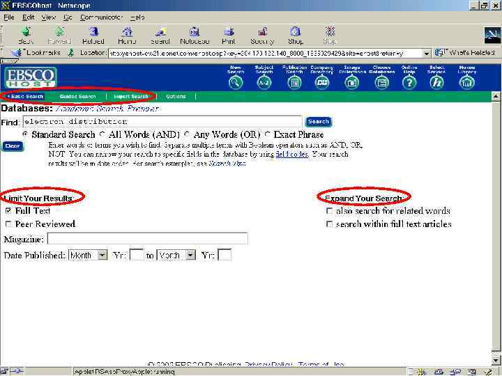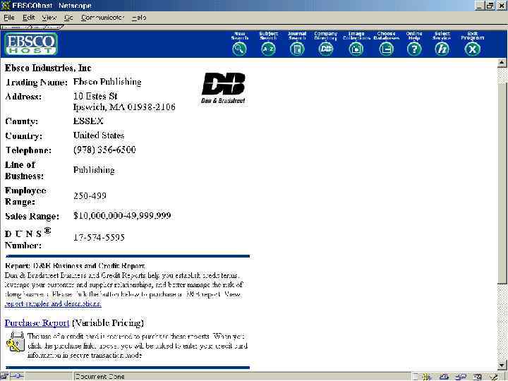 EBSCO Publishing (Elton B. Stephens Co. ) • Расположена в “научнотехнологическом поясе” в районе Бостона, США • Одна из наиболее быстро растущих онлайновых служб в мире • Базы данных EBSCO признаны наилучшими в опросе американских библиотек (по данным Library Journal)