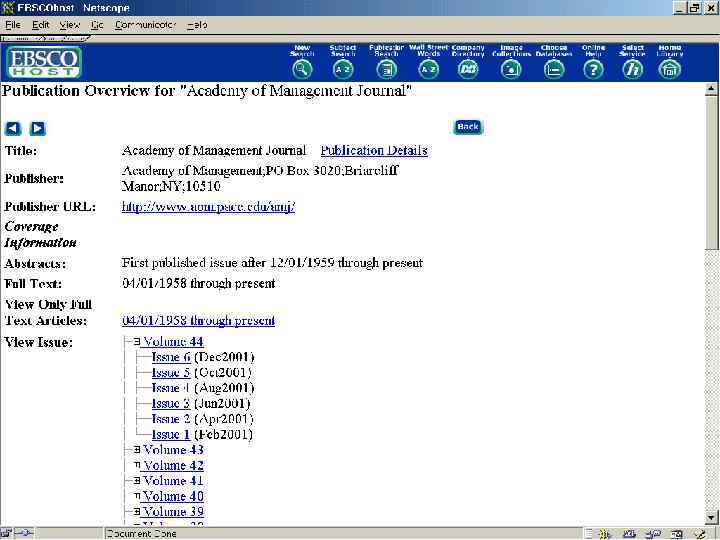 Глубокий архив журналов • EBSCO добавляет глубокий архив на 300 наиболее престижных журналов • Журналы выбраны на основании рейтингов научных обществ и индексов цитируемости • Архив с 1965 года или с первого года издания для 200 журналов по бизнесу, например : Academy of Management Journal (1958), Accounting Review (1926), Journal of Marketing (1936), и т. п. • Архив с 1975 года на 100 журналов из академической базы