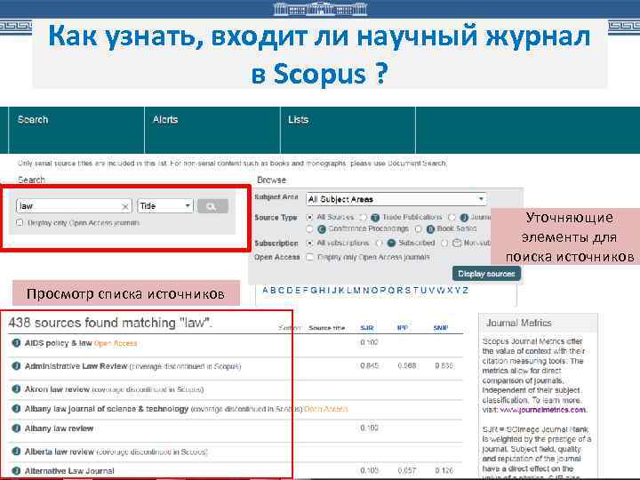 Как узнать, входит ли научный журнал в Scopus ? Уточняющие элементы для поиска источников Просмотр списка источников 117