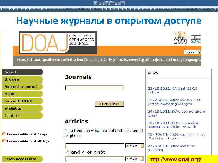 Научные журналы в открытом доступе http: //www. doaj. org/