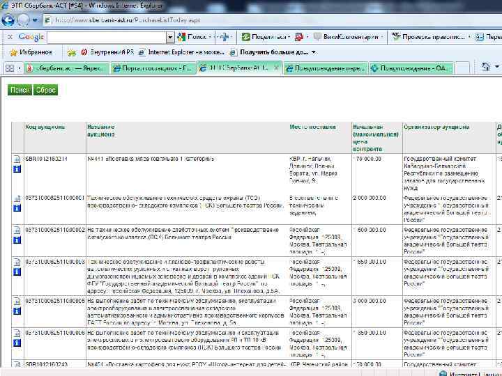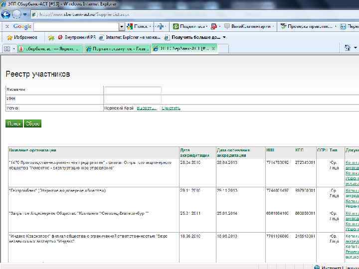 ЭЛЕКТРОННЫЕ ПЛОЩАДКИ n n n По результатам отбора операторов электронных площадок, состоявшегося в конце 2009 - начале 2010 годов, определены следующие операторы электронных площадок: - ОАО "Единая электронная торговая площадка" - www. roseltorg. ru; - ЗАО "ММВБ-Информационные технологии" www. ets-micex. ru; - ГУП "Агентство по государственному заказу, инвестиционной деятельности и межрегиональным связям Республики Татарстан" - www. zakazrf. ru; - ЗАО "Сбербанк - Автоматизированная Система Торгов" - www. sberbank-ast. ru; - ООО "Индексное агентство РТС" - www. rtstender. ru.