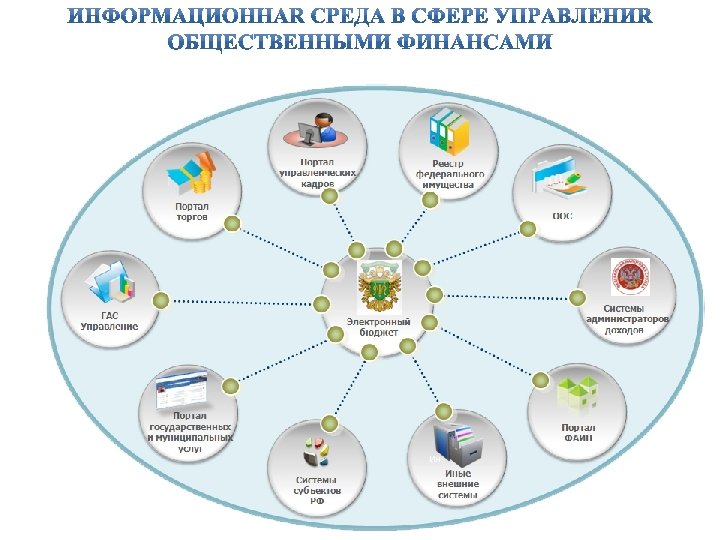 • достижение значения интегрального показателя прозрачности информации о государственных финансах (Open Budget Index), составляющего не менее 70 баллов • доведение доли юридически значимого электронного документооборота в общем объеме документооборота в ФХД федеральных организаций сектора государственного управления не менее чем до 70 процентов • сокращение времени обработки финансовой и управленческой документации федеральных организаций сектора государственного управления на 30 процентов • сокращение сроков формирования всех видов финансовой и управленческой отчетности федеральных организаций сектора государственного управления в 1, 5 раза • доведение доли информации, размещаемой на едином портале бюджетной системы Российской Федерации (www. budget. gov. ru) в режиме реального времени, до 100 процентов • обеспечение возможности доступа к работе в системе "Электронный бюджет" всем субъектам Российской Федерации и не менее 50 процентам муниципальных образований Российской Федерации
