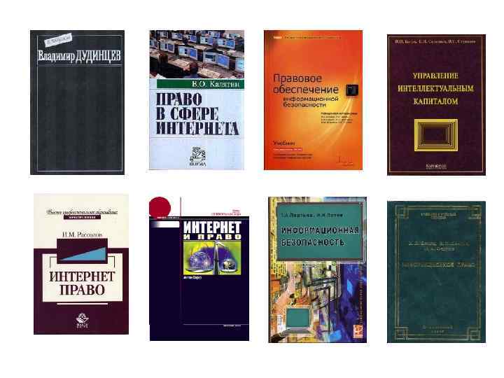 ЛИТЕРАТУРА Нормативные правовые акты Конституция Российской Федерации, принята всенародным голосованием 12 декабря 1993 г. Гражданский кодекс Российской Федерации (ГК РФ) (Часть I 4) от 30 ноября 1994 г. (с изм. и доп. от 10 января 2008 г. ) // – М. : НОРМА, 2008. . Уголовный кодекс РФ от 13 июня 1996 г. № 63 ФЗ (УК РФ) (с изм. и доп. от 5 января 2006 г. ) // СЗ РФ от 17 июня 1996 г. № 25 ст. 2954. Трудовой кодекс Российской Федерации от 30 декабря 2001 г. № 197 ФЗ (ТК РФ) (с изм. и доп. от 9 мая 2005 г. ) // СЗ РФ от 7 января 2002 г. № 1 (часть I) ст. 3. Кодекс Российской Федерации об административных правонарушениях от 30 декабря 2001 г. № 195 ФЗ (Ко. АП РФ) (с изм. и доп. от 5 января 2006 г. ) // СЗ РФ от 7 января 2002 г. № 1 (часть I) ст. 1. Федеральный закон от 27 июля 2006 г. N 149 ФЗ "Об информации, информационных технологиях и о защите информации" СЗ РФ от 31 июля 2006 г. N 31 (часть I) ст. 3448. Федеральный закон от 20 февраля 1995 г. № 24 -ФЗ "Об информации, информатизации и защите информации" (с изм. и доп. от 10 января 2003 г. ) // СЗ РФ от 20 февраля 1995 г. № 8 ст. 60. Федеральный закон от 4 июля 1996 г. № 85 -ФЗ "Об участии в международном информационном обмене" (с изм. и доп. от 29 июня 2004 г. ) // СЗ РФ от 8 июля 1996 г. № 28, ст. 3347. Федеральный закон от 7 июля 2003 г. № 126 ФЗ "О связи" (с изм. и доп. от 9 мая 2005 г. ) // СЗ РФ от 14 июля 2003 г. № 28 ст. 2895. Федеральный закон от 10 января 2002 г. № 1 ФЗ "Об электронной цифровой подписи" // СЗ РФ от 14 января 2002 г. № 2 ст. 127. Федеральный закон от 11 ноября 2003 г. № 153 ФЗ "О внесении изменения в статью 5 Закона Российской Федерации "О государственной тайне" // СЗ РФ от 17 ноября 2003 г. № 46 (часть II) ст. 4449. Федеральный закон от 29 июля 2004 г. N 98 ФЗ "О коммерческой тайне"//СЗ РФ от 9 августа 2004 г. N 32 ст. 3283. Патентный закон РФ от 23 сентября 1992 г. № 3517 I (с изм. и доп. от 7 февраля 2003 г. )// Ведомости Верховного Совета РФ от 22 октября 1992 г. № 42 ст. 2319. Закон РФ от 23 сентября 1992 г. № 3523 I "О правовой охране программ для электронных вычислительных машин и баз данных" (с изм. и доп. от 2 ноября 2004 г. ) // Ведомости Верховного Совета РФ от 22 октября 1992 г. № 42 ст. 2325. Закон РФ от 27 декабря 1991 г. № 2124 I "О средствах массовой информации" (с изм. и доп. от 21 июля 2005 г. ) // Ведомости Верховного Совета РФ от 13 февраля 1992 г. № 7 ст. 300. Закон РФ от 9 июля 1993 г. № 5351 I "Об авторском праве и смежных правах" (с изм. и доп. от 20 июля 2004 г. ) // Ведомости Верховного Совета РФ от 12 августа 1993 г. № 32 ст. 1242. Указ Президента РФ от 20 мая 2004 г. № 649 "Вопросы структуры федеральных органов исполнительной власти" (с изм. и доп. от 3 октября 2005 г. ) // СЗ РФ от. 24 мая 2004 г. № 21 ст. 2023. Указ Президента РФ от 31 декабря 1993 г. № 2334 "О дополнительных гарантиях прав граждан на информацию" (с изм. и доп. от 1 сентября 2000 г. ) // Российская Газета от 10 января 1994 г. № 4. Основная 1. Гаврилов О. А. Курс правовой информатики: Учебник для вузов. – М. : НОРМА, 2002. 2. Фатьянов А. А. Правовое обеспечение безопасности информации в Российской Федерации. – М. : Юрист, 2001. Дополнительная 1. Алексеев С. С. Право на пороге нового тысячелетия. – М. : СТАТУТ, 2000. 2. Бачило И. Л. Информационное право: Основы практической информатики. Учебное пособие. – М. : издат. Тихомирова М. Ю. , 2003. 3. Бачило И. Л. , Лопатин В. Н. , Федотов М. А. Информационное право: Учебник для вузов. −М. : Юридический Центр Пресс, 2005. 4. Бержель Ж. Л. Общая теория права. – М. : NOTA BENE, 2000. *5. Копылов В. А. Информационное право: Учебник. – 2 -е изд. , перераб. и доп. – М. : Юристъ, 2002. 6. Лапина М. А. Информационное право – М. : ЮНИТИ ДАНА, 2004. 7. Полякова А. В. , Т