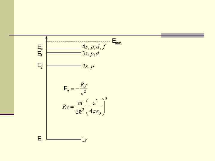 Главное квантовое число n может принимать любые целые положительные значения от 1 до ∞. Оно определяет величину энергии э. В (1) Здесь Z – порядковый номер элемента в таблице Д. И. Менделеева.