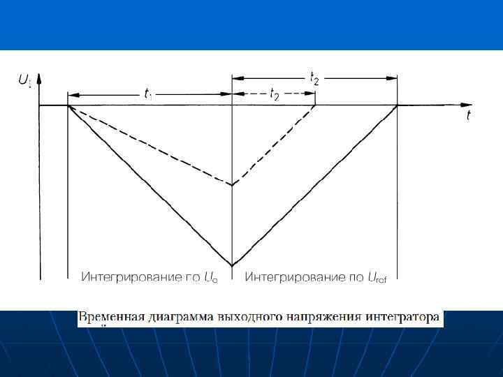 n По прошествии этого времени вход интегратора отключается от входа АЦП и подключается к генератору стабильного тока. Полярность генератора такова, что он уменьшает заряд, накопленный в интеграторе. Процесс разряда длится до тех пор, пока заряд в интеграторе не уменьшится до нуля. Время разряда измеряется путём счёта тактовых импульсов от момента начала разряда до достижения нулевого заряда на интеграторе. Посчитанное количество тактовых импульсов и будет выходным кодом АЦП. Можно показать, что количество импульсов n, посчитанное за время разряда, равно: n ~ Uвх