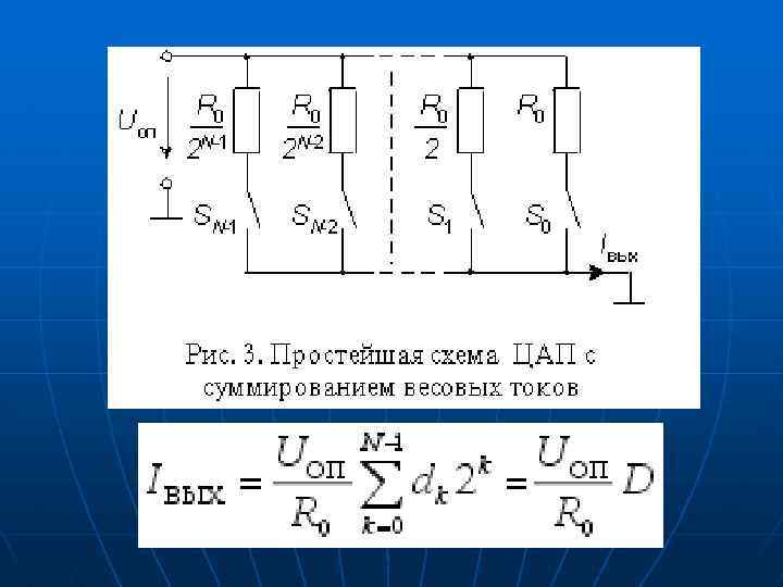 Параллельные ЦАП n n ЦАП с cуммированием весовых токов Большинство схем параллельных ЦАП основано на суммировании токов, сила каждого из которых пропорциональна весу цифрового двоичного разряда, причем должны суммироваться только токи разрядов, значения которых равны 1.