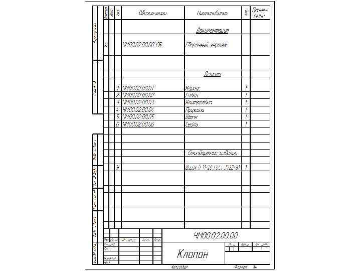 Прочитать чертеж общего вида, это означает: 1. Ознакомление с содержанием основной надписи для определения: наименования изделия, масштаба изображения, исполнителя и т. д. 2. Установление назначения и принципа работы изделия, его технических характеристик и требований к эксплуатации по документам, прилагаемым к чертежу (в учебных чертежах такие документы приведены на поле чертежа общего вида). 3. Определение по спецификации количества и наименования оригинальных, стандартизованных и покупных деталей, входящих в состав изделия.