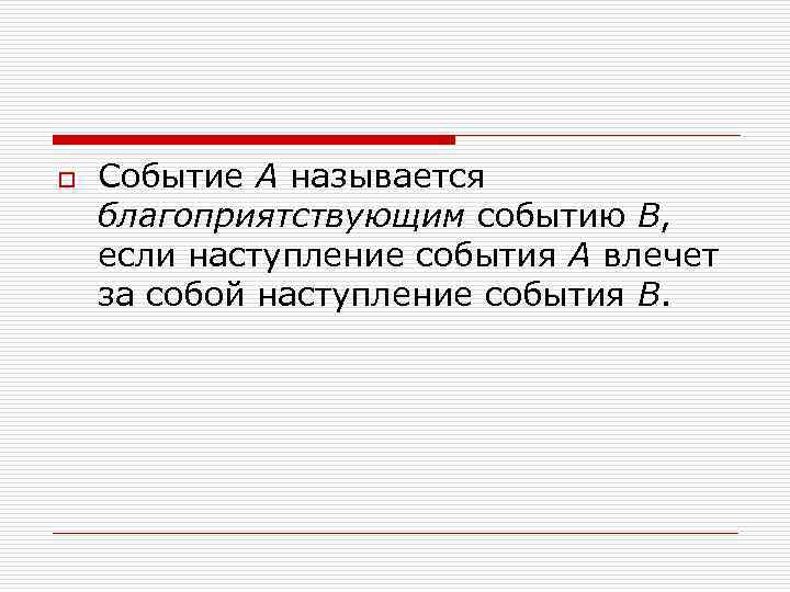 o Событие А называется благоприятствующим событию В, если наступление события А влечет за собой наступление события В.
