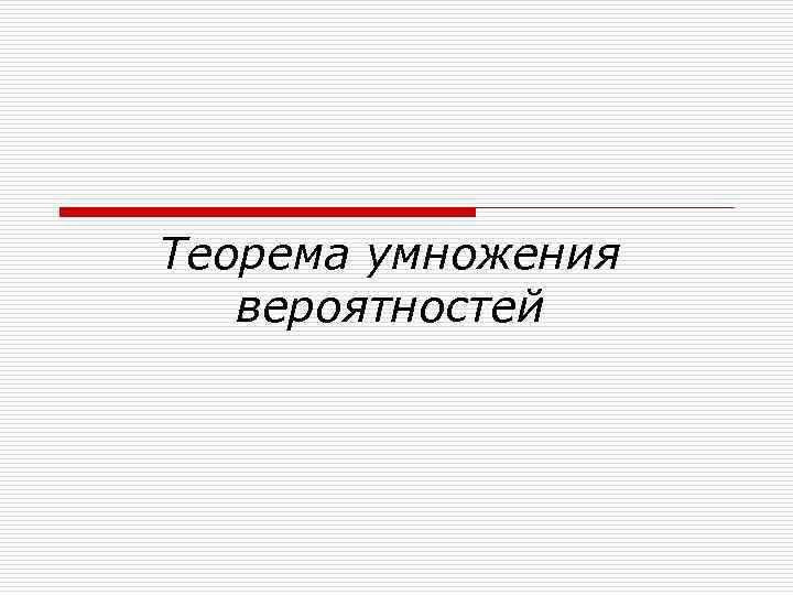 Теорема 1 o o Вероятность произведения двух зависимых событий А и В равна произведению вероятности одного из них и условной вероятности другого, найденной в предположении, что первое событие уже наступило: Р (АВ)=Р(А)Р(В А). NB!