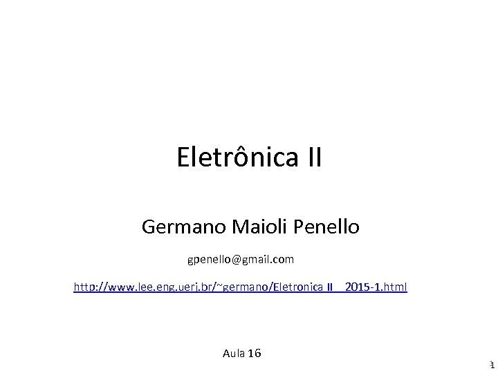 Eletrônica II Germano Maioli Penello gpenello@gmail. com http: //www. lee. eng. uerj. br/~germano/Eletronica II _ 2015 -1. html Aula 16 1 1