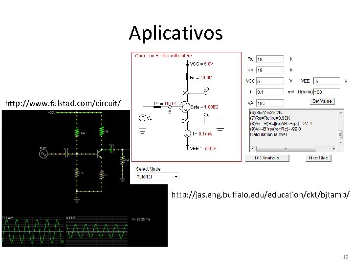 Aplicativos http: //www. falstad. com/circuit/ http: //jas. eng. buffalo. edu/education/ckt/bjtamp/ 12