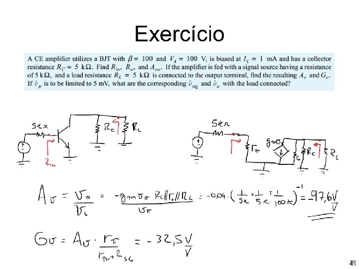 Coletor comum (seguidor de emissor) Note que Rout depende de Rsig e Rin depende de RL. Não é um amplificador unilateral. 43