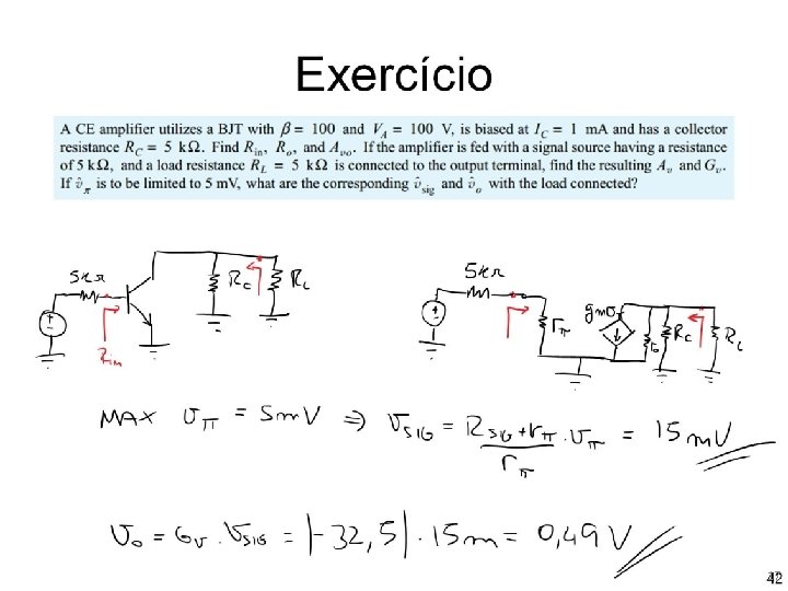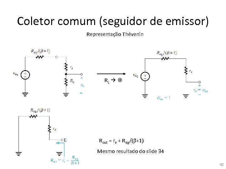Coletor comum (seguidor de emissor) Representação Thévenin RL 41