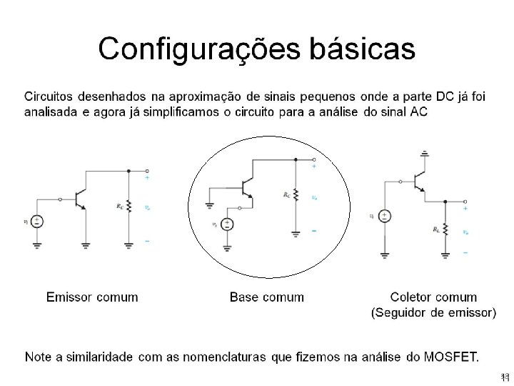 Base comum Calcular a características desta configuração. Utilizado para amplificar sinais de altas-frequências em cabos coaxiais. 19