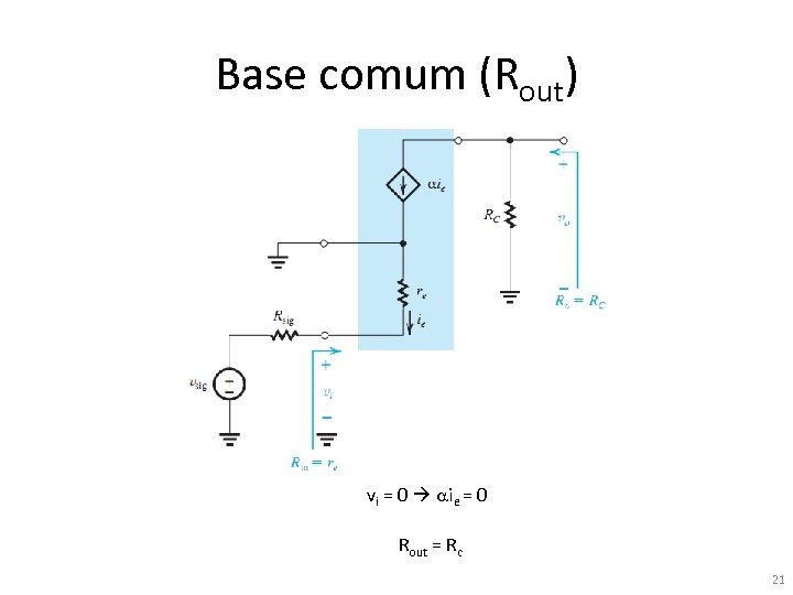 Base comum (Rout) vi = 0 aie = 0 Rout = Rc 21