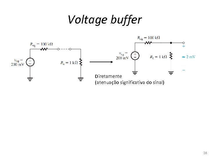 Voltage buffer Diretamente (atenuação significativa do sinal) 28