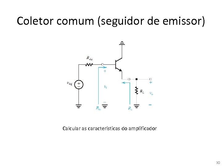 Coletor comum (seguidor de emissor) Calcular as características do amplificador 30
