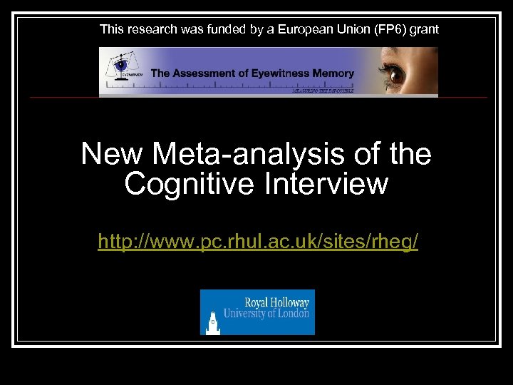 This research was funded by a European Union (FP 6) grant New Meta-analysis of the Cognitive Interview http: //www. pc. rhul. ac. uk/sites/rheg/