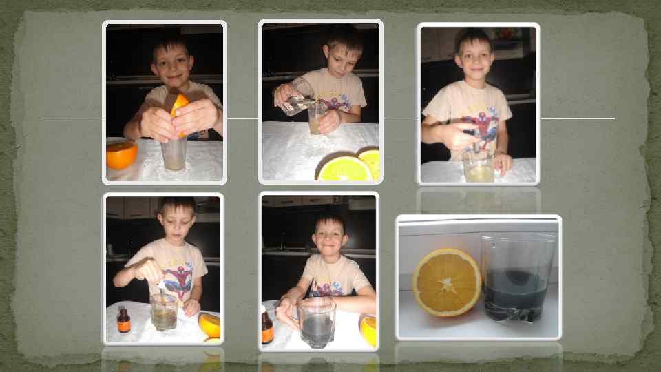 Мои исследования. Эксперимент № 1 Цель: определить наличие витамина С в свежевыжатом соке апельсина, лимона, киви методом йодометрии и провести сравнительную характеристику.