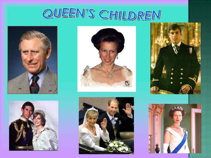 The Queen Prince Charles Prince of Wales Prince William Lady Diana Spencer Princess Anne The Royal Princess Captain Mark Phillips Prince Henry Peter Phillips Zara Phillips Prince Philip The Duke of Edinburgh Prince Sarah Andrew The Duke Ferguson Of York Princess Beatrice Princess Eugenie Prince Edward Earl of Wessex Sophie Rhys. Jones Louise James