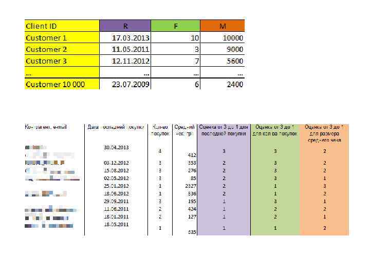 RFM анализ Сегментация на основе трех параметров: § давность (Recency) § частота (Frequency) § стоимость (Monetary) Хорошим мы считаем клиента, который покупает регулярно, тратит много денег и последний раз покупал недавно. А это значит, что такой клиент с большей вероятностью может сделать повторную покупку.