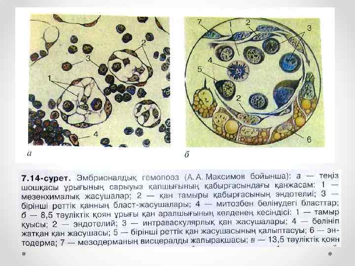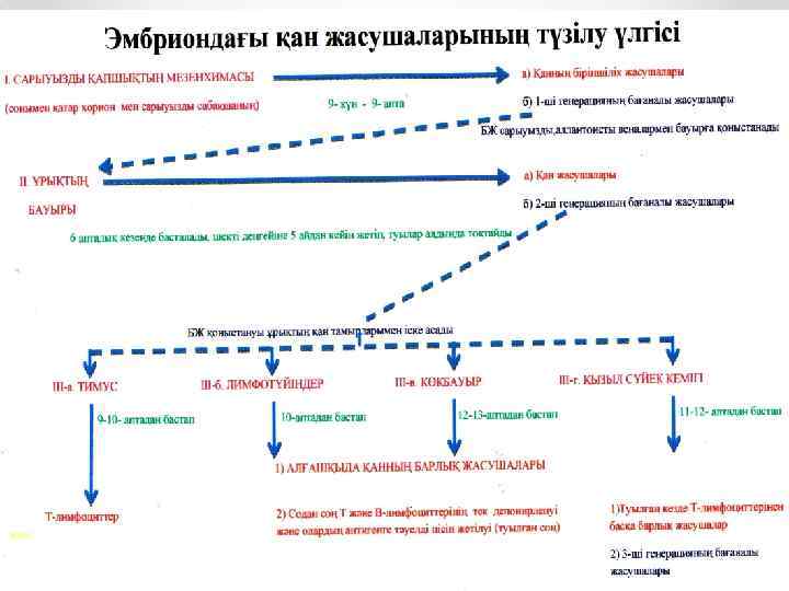 • Мақсаты: Дамудың ұрықтық кезіндегі қан жасушаларының дәл қай мүшелерде, қай уақыттан бастап және қандай жолмен пайда болатынын көрсету