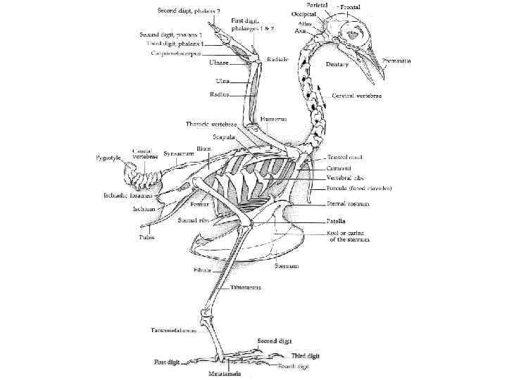 Скелет поясов и свободных конечностей os humerus os femur os antebrachii carpus os cruris metacarpus phalanges digitorum tarsus phalanges digitorum os tibiale os fibulare metatarsus