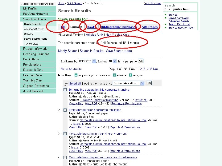 Обзоры исследований по менеджменту Emerald Management Reviews • Более 230, 000 обзоров статей из ведущих журналов и периодических изданий, выпускаемых другими издательствами • Архив с 1988 года • Основные реферируемые источники: – The Economist – Harvard Business Review – Business Week – Journal of Marketing – Journal of Finance – Sloan Management Review – Mc. Kinsey Quarterly