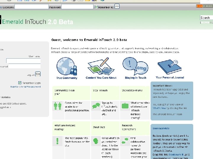 Для кого предназначена служба Emerald In. Touch? • Для исследователей, стремящихся выстроить "электронный дом для своего сообщества читателей журналов" • Для факультетов дистанционного обучения школ бизнеса и университетов • Для заведующих кафедрами и преподавателей, которые требуют от своих студентов свидетельства занятия неформальным обучением • Для поставщиков корпоративного обучения, желающих наладить связь с учащимися до, во время и после курса Для организаций с вновь набранными сотрудниками в разрозненных местоположениях Для всех членов академического или делового сообщества, желающих вести совместную работу, учиться или общаться через сеть. 30