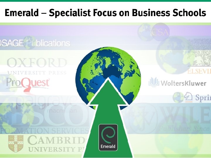 О компании Emerald • Emerald – это издательство с 40 -летним опытом работы в издательском деле, признанное международным профессиональным сообществом • Основано группой видных научных работников в 1967 году. В 2009 издательством Emerald опубликовано свыше 200 наименований журналов • Emerald – крупнейшее в мире издательство научной и специальной литературы в сферах бизнеса, менеджмента, библиотечных и информационных услуг