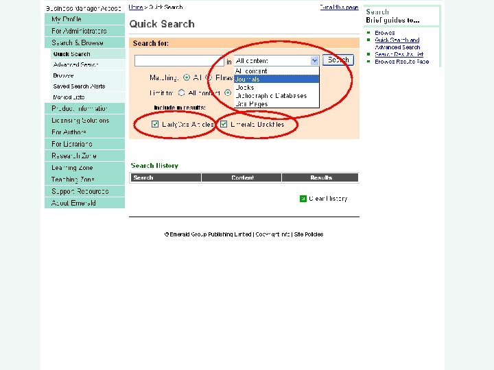 Обзоры исследований по менеджменту Emerald Management Reviews • Более 230, 000 обзоров статей из ведущих журналов и периодических изданий, выпускаемых другими издательствами • Архив с 1988 года • Основные реферируемые источники: – The Economist – Harvard Business Review – Business Week – Journal of Marketing – Journal of Finance – Sloan Management Review – Mc. Kinsey Quarterly