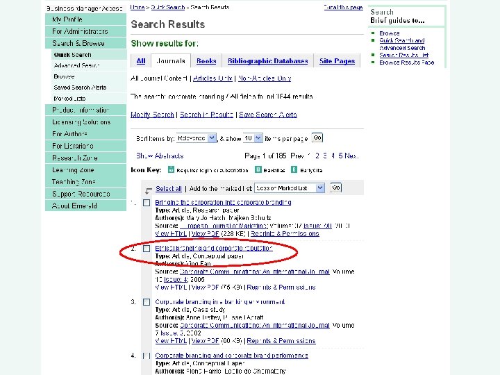 Emerald Management Xtra • Полнотекстовые версии статей по менеджменту – собрание статей из 200 наиболее престижных и рецензируемых журналов, охватывающее все основные области менеджмента (маркетинг, управление персоналом, экономика, финансовое управление, стратегическое управление) • Обзоры исследований по менеджменту – независимые систематизированные обзоры статей из 300 ведущих журналов по бизнесу и менеджменту