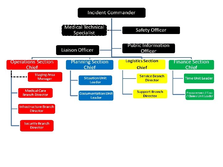 Basic NHICS Structure INCIDENT COMMANDER Medical Tech Officer Liaison Officer LOGISTICS SECTION PLANNING SECTION Safety Officer FINANCE SECTION OPERATIONS SECTION
