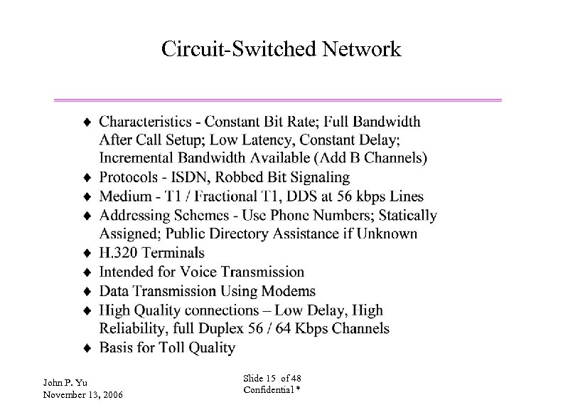 Circuit-Switched Network John P. Yu November 13, 2006 Slide 15 of 48 Confidential *