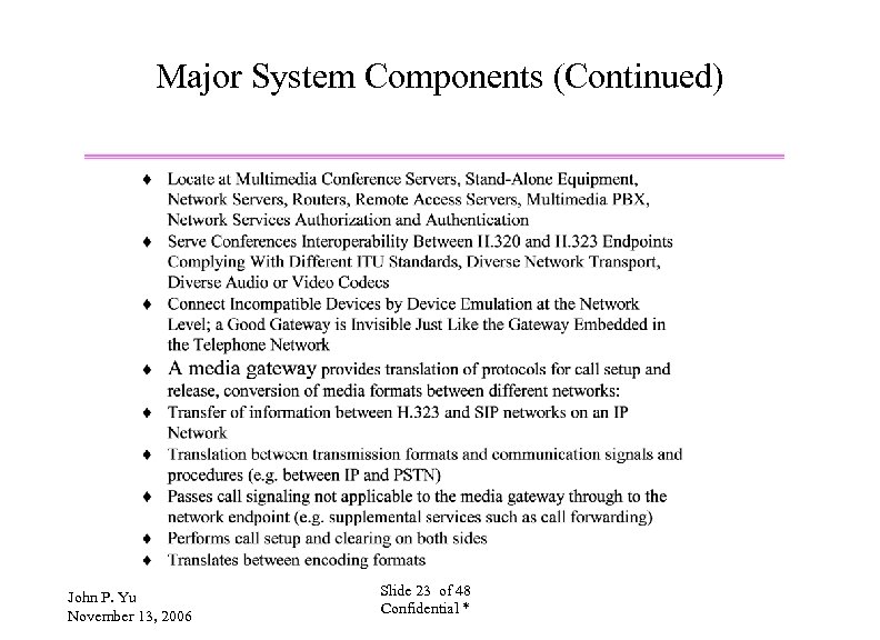 Major System Components (Continued) John P. Yu November 13, 2006 Slide 23 of 48 Confidential *