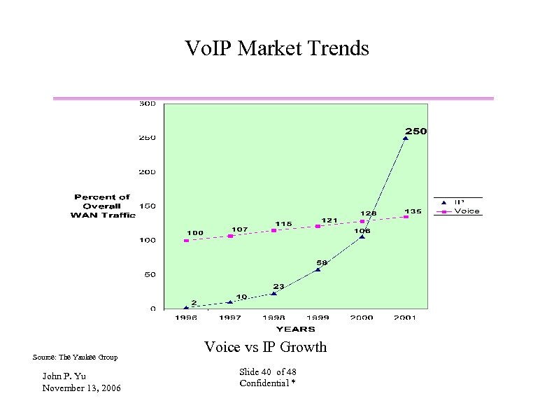 Vo. IP Market Trends Source: The Yankee Group John P. Yu November 13, 2006 Voice vs IP Growth Slide 40 of 48 Confidential *