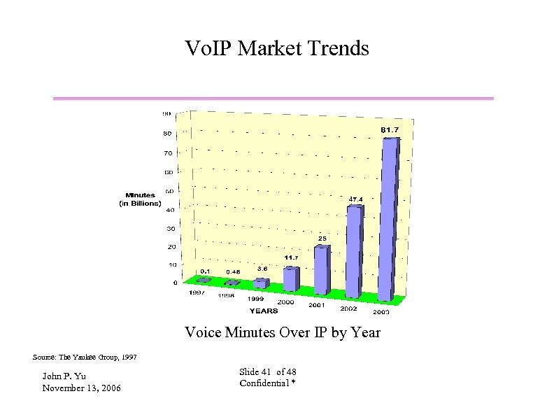 Vo. IP Market Trends Voice Minutes Over IP by Year Source: The Yankee Group, 1997 John P. Yu November 13, 2006 Slide 41 of 48 Confidential *