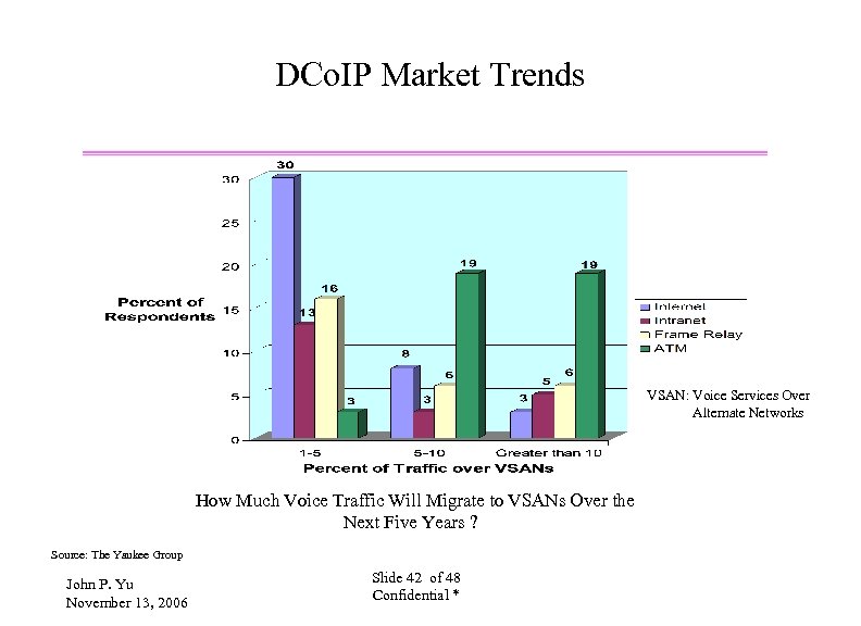 DCo. IP Market Trends VSAN: Voice Services Over Alternate Networks How Much Voice Traffic Will Migrate to VSANs Over the Next Five Years ? Source: The Yankee Group John P. Yu November 13, 2006 Slide 42 of 48 Confidential *