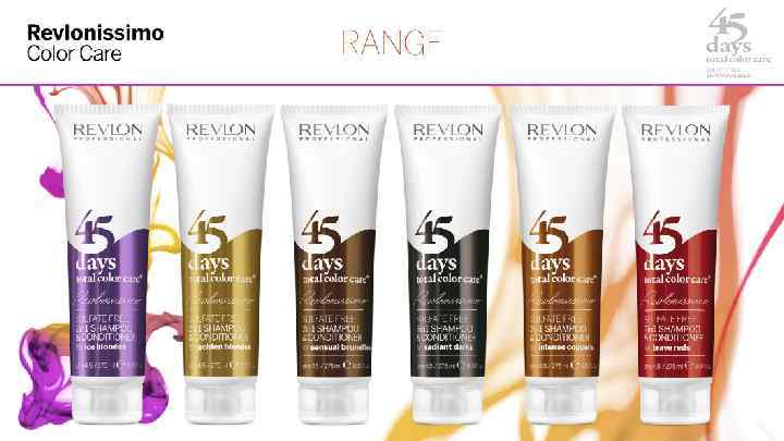 Это шампунь для прямого окрашивания? нет, это бес сульфатный 2 в 1 шампунь&кондиционер 45 days, созданный только для сохранения цвета окрашенных волос с низким содержанием пигментов. (R 45 примерно в 50 раз меньше по концентрации пигментов чем NCC). В чем разница между 45 days и NCC? R 45 days это 2 в 1 шампунь&кондиционер для поддержания цвета. NCC это маска — цвет, увлажнение и питание для окрашенных волос. ( так же можно использовать для нейтрализации нежелательных пигментов) Можно ли Его использовать вместе с NCC? Да. Конечно, если клиент желает усилить свой цветовой нюанс или нейтрализовать нежелательный пигмент, он может использовать сразу после 2 в 1 шампунь&кондиционер 45 days. Для достижения более четкого результата, мы советуем использовать 2 в 1 шампунь&кондиционер 45 days — для ежедневного применения и 3 раза NCC в течении 45 дней.